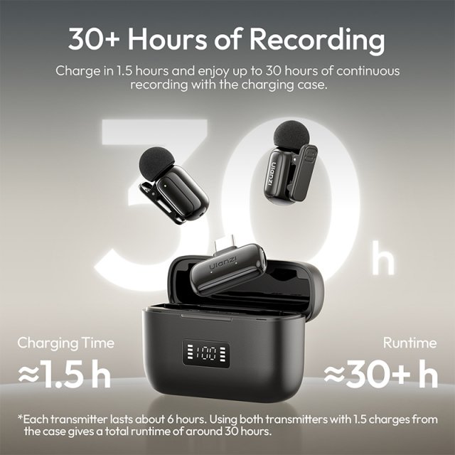 Equipped with a rechargeable lithium-polymer battery, this microphone provides up to 30 hours of continuous use on a single charge, making it ideal for full-day shoots, live streams, or extended vlogs. Fast 1.5-hour charging gets you back to recording quickly. The 48kHz/24-bit sampling rate and high signal-to-noise ratio ensure your audio stays crisp, clear, and professional at all times.
