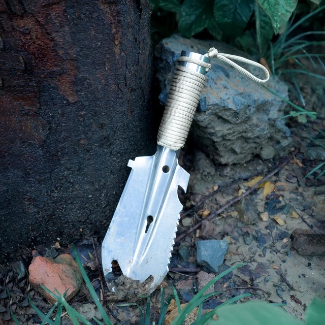 Made from high-strength stainless steel, this shovel is built to withstand tough ground, rocky soil, and repeated use. It resists rust and corrosion, making it ideal for outdoor environments where moisture and dirt are unavoidable. The solid construction gives you confidence whether you’re digging, clearing, or preparing your campsite.