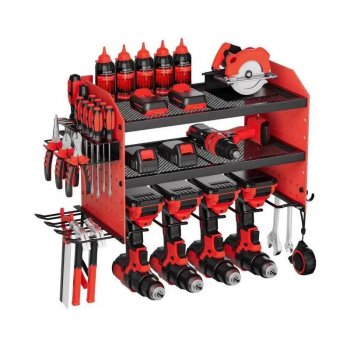 3-Tier Wall Mount Power Tool Organizer with Pegboard and Drill Holders