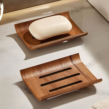 Walnut Wood Soap Dish Box with Drain for Bathroom & Kitchen