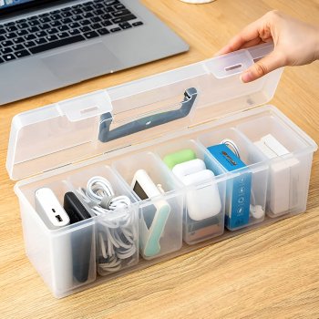 Plastic Data Cable Storage Box – 6 Compartment USB & Charger Organizer
