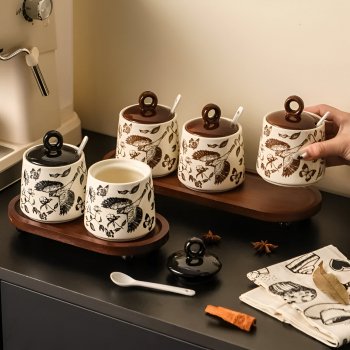 Vintage Ceramic Flower & Bird Kitchen Seasoning Jar Set – Salt & Sugar Storage
