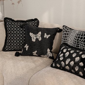 Black & White Boho Embroidered Pillow Cover with Textured Modern Pattern