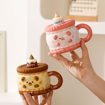 Cake-Style Ceramic Coffee Mug with Lid for Tea, Latte & Milk