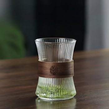 250ML Japanese Style Glass Coffee Mug with Walnut Cup Sleeve