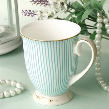 Elegant Bone China Tea Cups with Golden Stripes (300ml)
