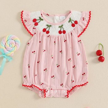 Baby Girl Cherry Embroidery Romper – Comfortable Bodysuit for Infants